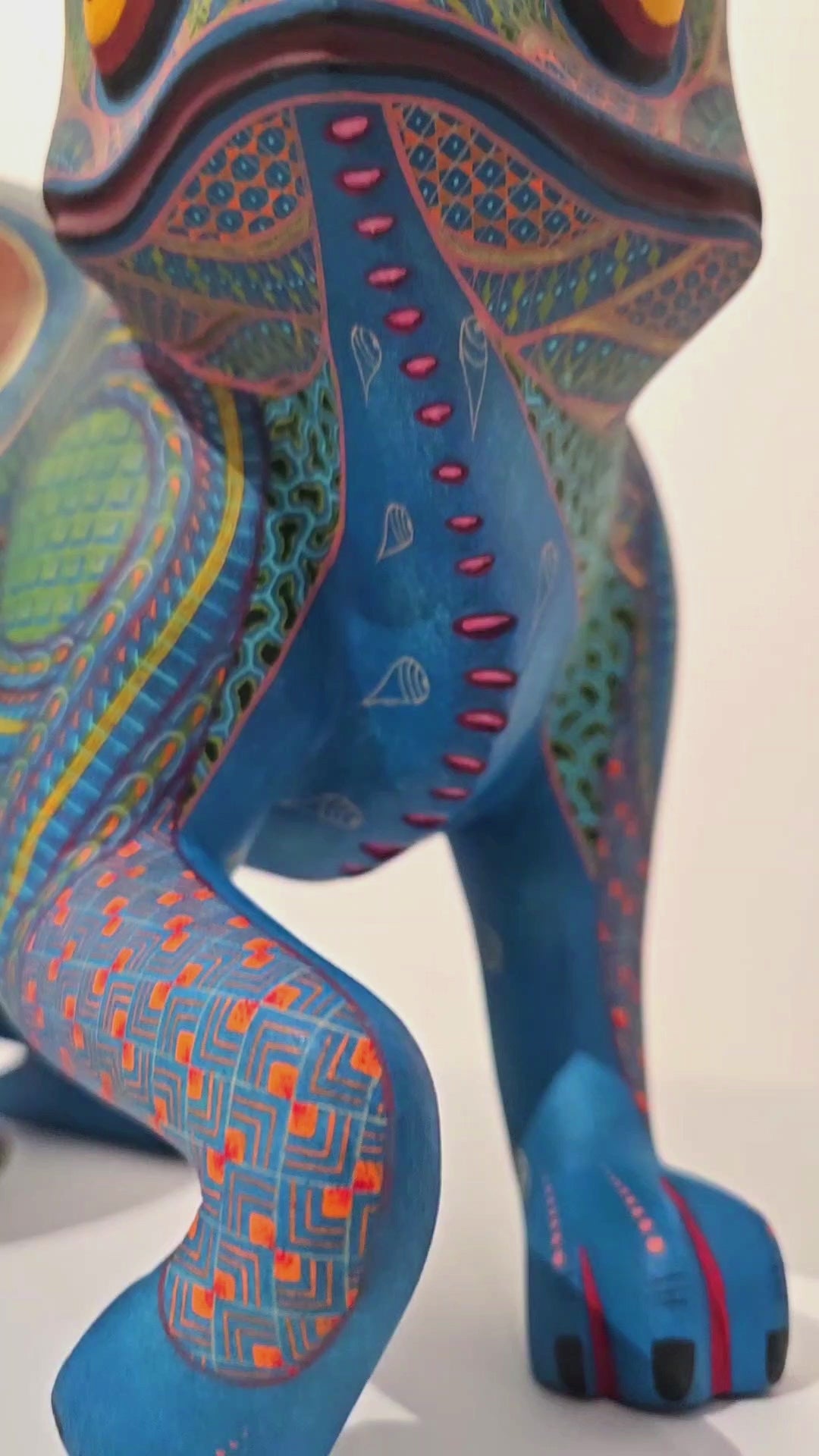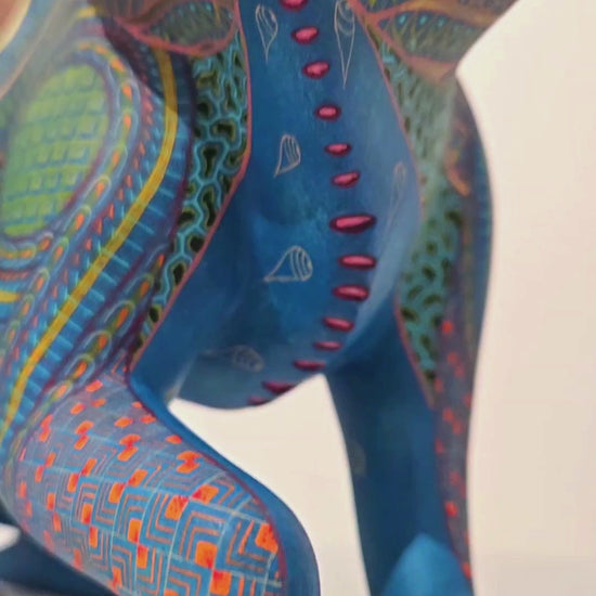 This is a masterful piece with little to no technical error. Crafted by Casa Coopal, a team of high-tier extraordinary alebrije artisans at Oaxaca, Mexico.
