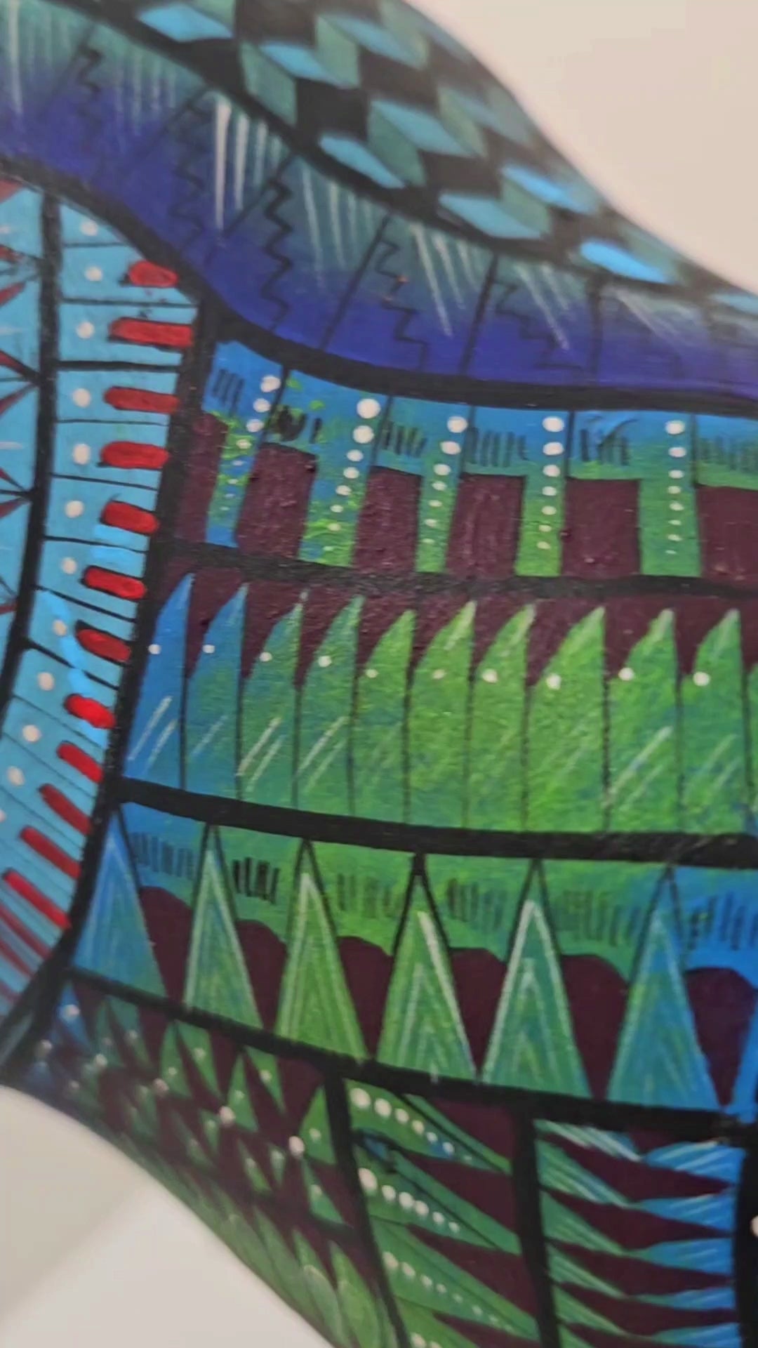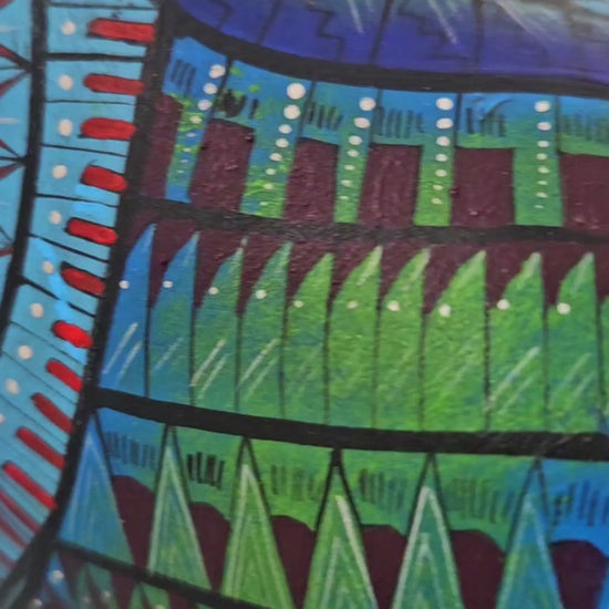 Its surface is marked with intricate codices and dreamlike grecas, rendered by hand in vivid detail. Each line speaks of movement, memory, and the untamed mind. Perfect as a decorative sculpture for a home, this unique piece adds a contemporary artistic touch while honoring traditional craftsmanship.