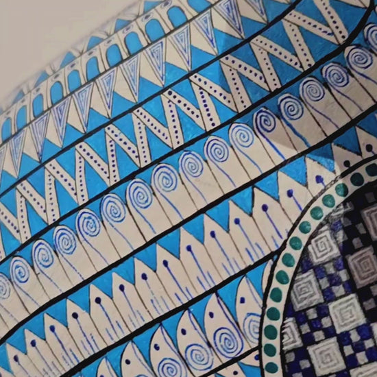 Its surface is layered with hand-painted codices, grecas, and sculptural textures — a dream rendered in geometry. There is story in its stillness, and intent in every line.
