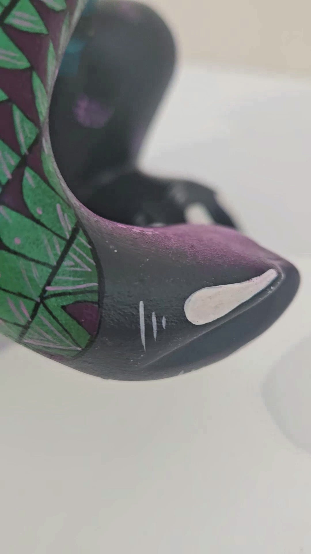 The surface is layered with hand-painted codices, grecas, and sculptural motifs drawn from Zapotec cosmology and the artist’s own vision.