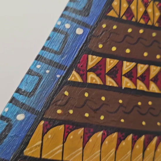 Hand-painted with layered Zapotec codices, grecas, and sculptural textures, this singular work blends ancestral reverence with raw, emotional presence.