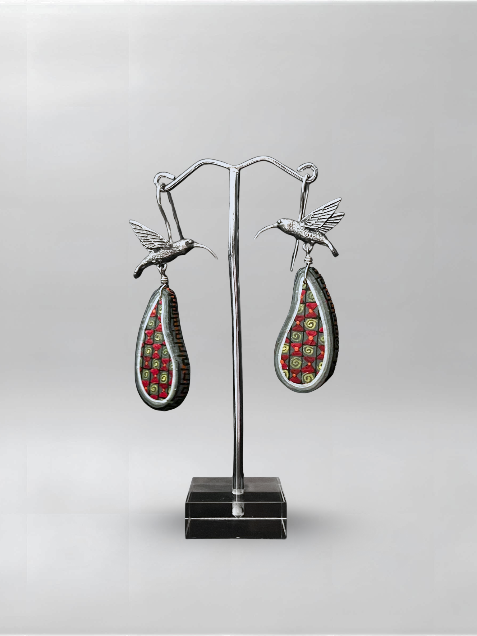 Hummingbird Black Red Curved Earrings