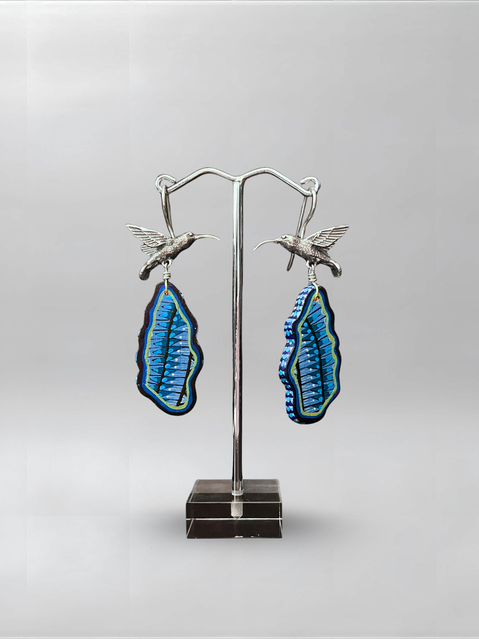 Hummingbird Blue Abstract Earrings